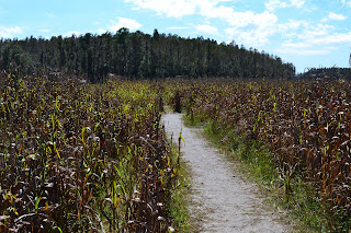 One thing I was surprised at was the corn stalks were brown and there was no corn on them. During the hayride, we were advised that the corn stalks were so brown due to the amount of water in the ground and it being the "green swamp" area did not help either. Do not be surprised, adults can see over the majority of corn stalks at the beginning of the maize. Towards the end, the stalks are higher.